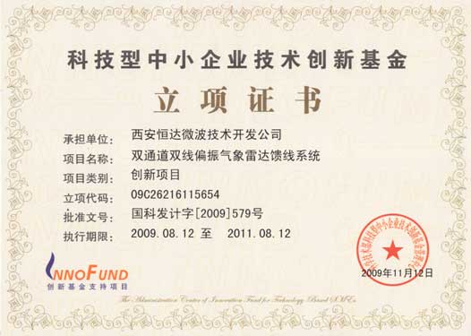 恭贺西安恒达微波技术开发公司“双通道双线偏振气象LD馈线系统项目”获得