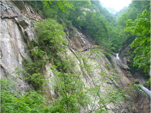 ![]() 彩虹瀑布合影 ![]() 绝壁险道 |