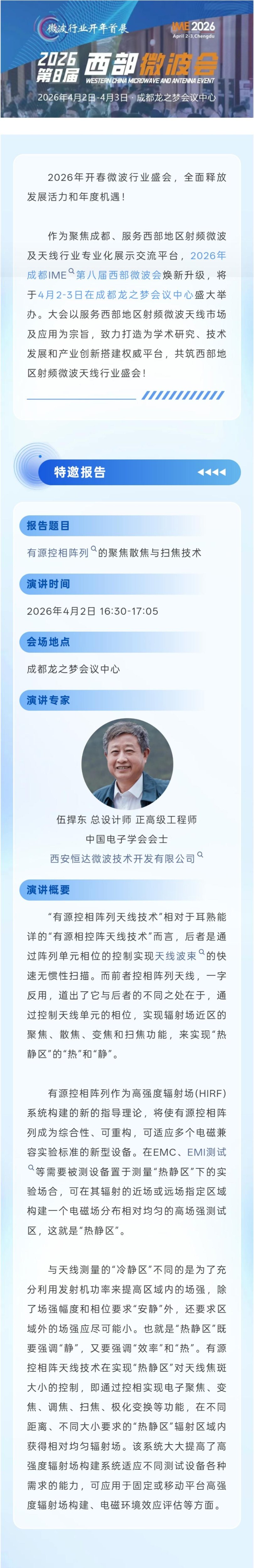 特邀报告 | 恒达微波总设计师伍捍东:有源控相阵列的聚焦散焦与扫焦技术